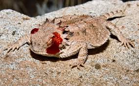 El lagarto Cornudo arroja un chorro de sangre por lo ojos